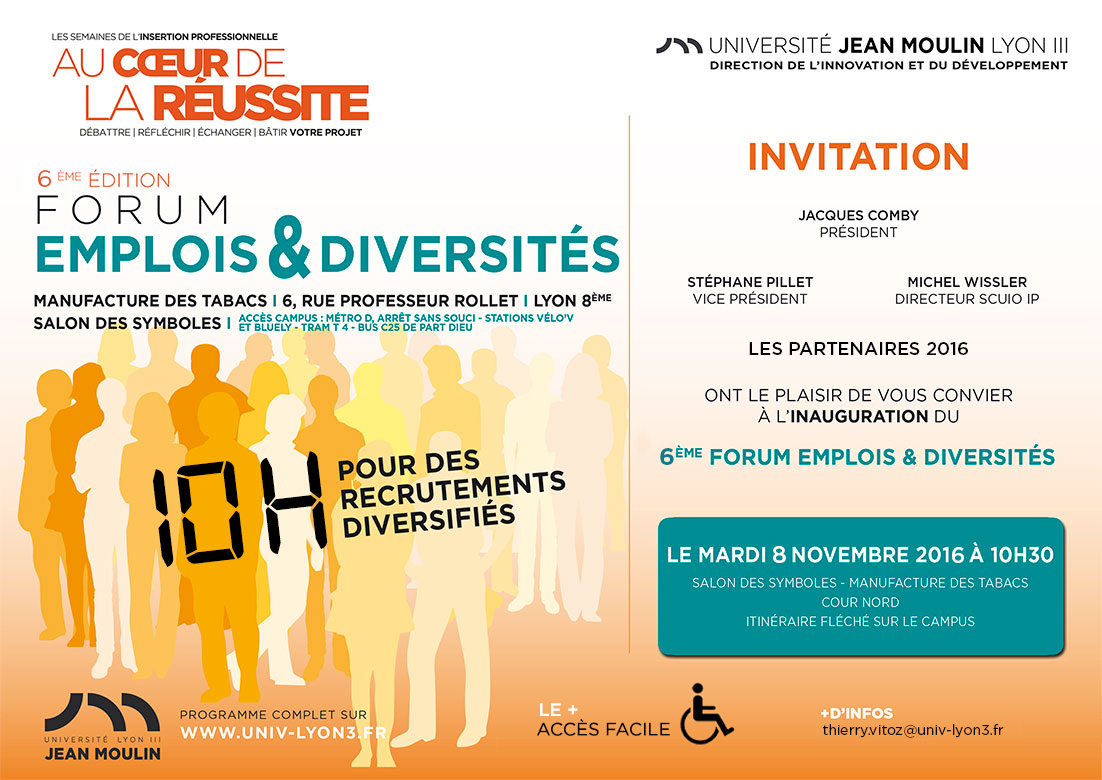 Vous êtes à la recherche d'un CDD, CDI ou d'un contrat de professionnalisation ? Participez à la 6e édition du Forum Emplois & Diversités organisée par l’Université Jean Moulin.